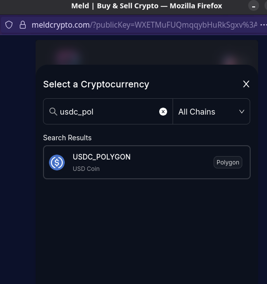 Make sure to set the receiving currency as USDC_POLYGON and fill your wallet first.